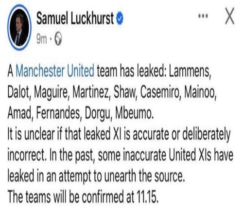 还有内鬼曼联调查德比首发提前泄密事件!穆帅至今阵容屡遭公开