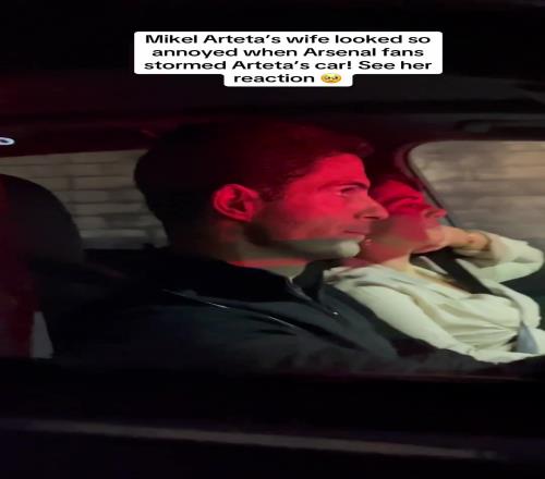 成固定景点了阿尔特塔驾车被球迷堵住,妻子翻白眼无奈扶额
